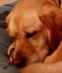 This picture of a sleeping dog is already sufficiently described by the adjacent text. There is no need to repeat this information, and a null (empty) alt value can be used for this image.
